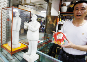 “光昨天就賣(mài)出去了3000枚像章,價(jià)格在10元至1000元之間不等,其中直徑為3~5厘米的毛澤東像章賣(mài)得最好。” 中興路收藏市場(chǎng)內(nèi),以紅色收藏為特色的店主谷學(xué)書(shū)告訴記者,今年是新中國(guó)成立60周年,伴隨著一系列紀(jì)念活動(dòng)的開(kāi)展,涉及1949年~1979年期間的宣傳畫(huà)、像章、瓷器、書(shū)籍等在內(nèi)的紅色藏品變得炙手可熱起來(lái)。