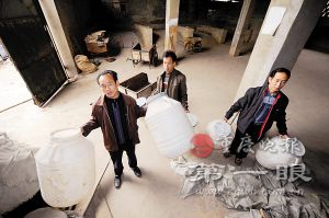 老熊家里弄了5個酒窖,以前每個月能生產(chǎn)5000多公斤白酒。今年卻已經(jīng)停產(chǎn)3個多月,酒曲堆放在屋角,酒池蒙上了一層細(xì)灰。他說:“5個酒窖如果全部開工,每天需要大約2噸水。以前泉水和自來水都很充足,F(xiàn)在泉水基本干涸了,自來水也得不到保證,所以春節(jié)后酒廠就停產(chǎn),不曉得什么時候能開工!