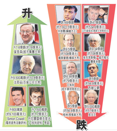 據(jù)香港文匯報報道,過去1年內(nèi),英國富豪1550億英鎊被蒸發(fā),是富豪榜出版21年以來最大的跌幅。富豪人數(shù)亦由75人減少至43人。