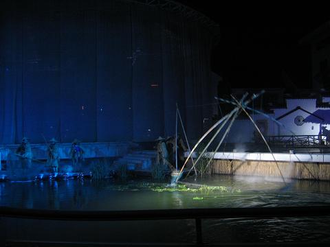 昨晚,可容納千人的《四季周莊》觀眾席座無虛席,演出的三個篇章--漁歌、漁婦、漁燈、漁作表現(xiàn)的“水韻周莊”;以春的《雨巷》、夏的《采藕》、秋的《豐收》、冬的《過年》反映的“四季周莊”;迎財神、打田財、阿婆茶、水鄉(xiāng)婚慶展示的“民俗周莊”,場面恢宏,江南水鄉(xiāng)文化的獨有性深深吸引著海內(nèi)外游客眼球。