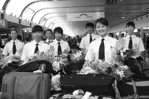 前日17時許,6名經(jīng)過美國FAA嚴格考核,已取得飛行員資格的女大學生,面帶笑容走下CA986航班,這六名平均年齡22歲的女大學生,即將加盟中國國際航空公司(下簡稱國航)。據(jù)國航宣傳部門介紹,此6人是國航總部首批女飛行員。