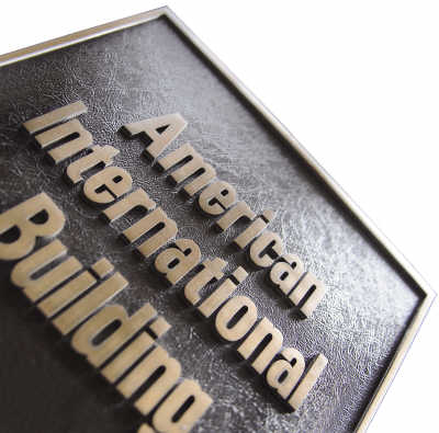 AIG標識現(xiàn)在矗立于其全球總部——美國國際大廈,黃銅色鐫刻的“美國國際大廈”的標志已然成為公司的招牌。這座大廈坐落在紐約松木街的街角處,繼世貿(mào)大廈倒塌后成為曼哈頓區(qū)的最高大樓。AIG曾表示,或?qū)⒊鍪圻@座總部大樓,籌集更多資金以償還政府貸款。