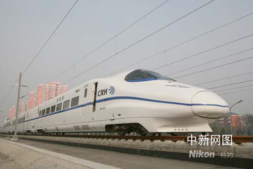 資料圖:2008年4月24日,記者從京津城際鐵路動車組開行試驗單位獲悉,目前正在進行試驗的設(shè)計時速300公里國產(chǎn)動車組創(chuàng)造了近370公里時速的新紀錄。據(jù)專業(yè)人士介紹,國產(chǎn)動車組能夠安全平穩(wěn)達到這一高速,說明國產(chǎn)化高速動車組能夠勝任京津城際鐵路的運輸重任。對京津兩地百姓來說,通過高速鐵路實現(xiàn)北京到天津半小時就可到達的愿望已經(jīng)指日可待。