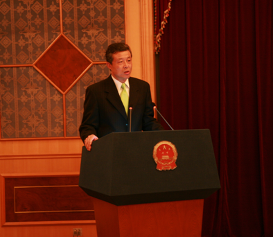 劉曉明大使首先致辭。他對金永日副外相率朝鮮外務(wù)省主管中國事務(wù)的同志們來我館參加聯(lián)誼活動表示歡迎,感謝外務(wù)省同志們長期以來為發(fā)展中朝關(guān)系做出的不懈努力和積極貢獻(xiàn)。他說,今年,在兩國最高領(lǐng)導(dǎo)人的關(guān)心下,中朝關(guān)系發(fā)展順利。雙方保持高層交往,胡錦濤總書記先后三次向金正日總書記轉(zhuǎn)達(dá)了重要口信。楊潔篪外長就任后首次正式出訪即來朝鮮。不久前,中共中央政治局委員、書記處書記、中宣部長劉云山同志訪問朝鮮。中共十七大后,中央領(lǐng)導(dǎo)同志首次出訪即到朝鮮,體現(xiàn)了我黨新一屆中央領(lǐng)導(dǎo)集體高度重視并十分珍惜中朝傳統(tǒng)友誼,并將一如既往地致力于鞏固和發(fā)展中朝友好合作關(guān)系。金正日同志親切會見并設(shè)宴款待劉云山同志;他還于年初在時隔七年后來中國大使館做客,這些都體現(xiàn)了金正日總書記和朝鮮勞動黨及政府對中朝兩黨、兩國關(guān)系的高度重視。