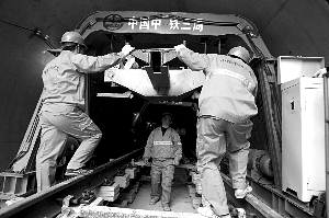 “目前的鋪軌技術(shù)是國(guó)內(nèi)最先進(jìn)的,25米的鋼軌在地面形成軌排,然后機(jī)械下到地下進(jìn)行鋪裝。”中鐵一局軌道項(xiàng)目經(jīng)理表示,目前一個(gè)基地每天的鋪軌進(jìn)度是150米。“28公里的軌道線上,8.5公里路段采用了減震處理!痹撠(fù)責(zé)人表示,4號(hào)線是北京減震處理最多的一條地鐵。