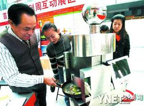 展臺上,一臺廚房機(jī)器人特別吸引參觀者的注意,機(jī)器人看上去像是一摞鐵籠屜,背后有各種作料罐,胸前連接著鍵盤和顯示器。機(jī)器人的發(fā)明者向記者演示了一下操作流程,只要放入原材料,點擊電腦中的菜單,機(jī)器人就會自動定時翻炒,幾分鐘一盤熱菜就出鍋了!澳壳拔乙呀(jīng)開發(fā)了200個菜單,宮保雞丁、魚香肉絲這樣的家常菜,機(jī)器人都能炒,而且味道還能跟大廚較量!