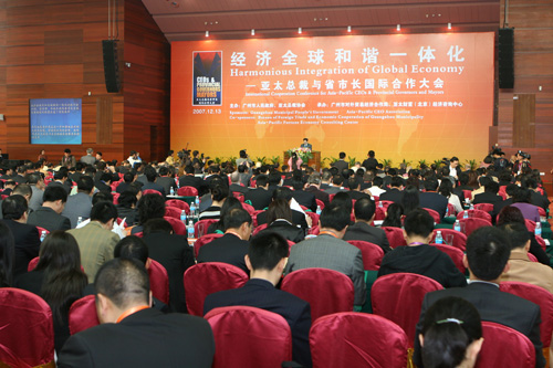 本次大會(huì)開(kāi)幕式,由廣州市副市長(zhǎng)陳明德主持,張廣寧市長(zhǎng)和鮑勃•霍克主席分別致辭。張廣寧市長(zhǎng)指出,當(dāng)今世界,經(jīng)濟(jì)全球化和區(qū)域經(jīng)濟(jì)一體化進(jìn)程不斷加快,為各國(guó)、各地區(qū)經(jīng)濟(jì)要素在全球范圍的優(yōu)化配置和經(jīng)濟(jì)效益的提高創(chuàng)造了有利條件。但是目前全球化進(jìn)程也充滿矛盾和不均衡,如何正確認(rèn)識(shí)和妥善應(yīng)對(duì)全球化,建立長(zhǎng)期聯(lián)系的穩(wěn)定有效機(jī)制,推進(jìn)全球化進(jìn)程朝著均衡、普惠、共贏的方向發(fā)展,創(chuàng)建共同繁榮的和諧世界,是許多具有遠(yuǎn)見(jiàn)卓識(shí)的人士共同關(guān)心的重大問(wèn)題。張市長(zhǎng)呼吁,亞太地區(qū)各方更應(yīng)進(jìn)一步加強(qiáng)相互間的交流與溝通,增進(jìn)彼此間的合作,共同促進(jìn)亞太地區(qū)乃至全球經(jīng)濟(jì)的繁榮和持續(xù)發(fā)展。