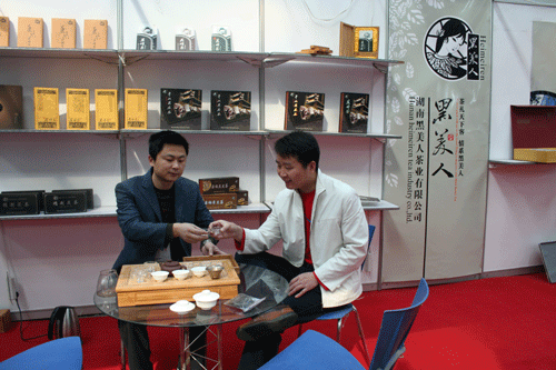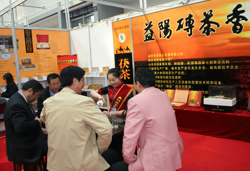 湖南益陽黑茶展臺(tái)設(shè)在西洽會(huì)的B2區(qū),特色的茶具,古色古香的茶葉包裝展覽,使得整個(gè)展區(qū)彌漫著黑茶歷史文化的氛圍。益陽是全國最早也是湖南最大的黑茶產(chǎn)區(qū),黑茶歷史文化資源十分豐厚,這里是中國第一塊黑磚、第一塊花磚、第一茯磚的誕生地,而益陽安化還是古絲綢茶路與茶馬古道的起始點(diǎn)、出發(fā)地,至今保留許多有重大歷史文化遺產(chǎn)價(jià)值的文物古跡,也是至今世界唯一的千兩茶生產(chǎn)地,2006年2月14日中央電視臺(tái)《鑒寶》欄目展出一簍53年前產(chǎn)自安化白沙溪茶廠的天尖,專家評(píng)價(jià)48萬元并被競(jìng)買走,轟動(dòng)了全國茶葉界和收藏界。一直以來,黑茶是湖南的主要茶類,年產(chǎn)量達(dá)2.5萬噸,占全國總量的50℅以上,為保障邊疆少數(shù)民族地區(qū)人民生活需要和邊疆地區(qū)的穩(wěn)定、繁榮,維護(hù)國家民族團(tuán)結(jié)作出了重大貢獻(xiàn)。(廖艷瓊)