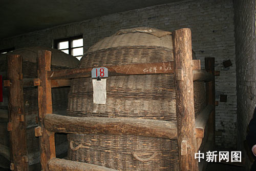 在1956年建造的青磚紅瓦的西鳳酒儲存庫房內(nèi),放著兩排大酒海,大酒海是用一種產(chǎn)自秦嶺深處多年生的特殊藤條編制外殼,然后先用豆腐等原料從里面填糊藤條的縫隙,等干燥后,先后在里面裱糊20層白棉布,等再次干燥后,再在其表面涂上蜂蠟和菜籽油養(yǎng)護(hù)一段時間才可投入使用。庫房內(nèi)存儲著各個時期封存的西鳳酒,從1957年到20世紀(jì)80年代,網(wǎng)絡(luò)媒體記者多是80后,紛紛找與自己“同齡”的大酒海合影。