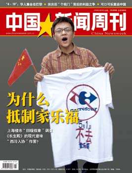 這是21世紀(jì)初中國民眾第三次大規(guī)模抵制洋貨,矛頭指向法國在中國最真實的存在——遍及30多個城市、擁有112家分店的家樂福超市。傳導(dǎo)鏈條則是人們熟悉的渠道——網(wǎng)絡(luò)社區(qū)、QQ、MSN。 事件發(fā)生后,《中國新聞周刊》記者前往北京、昆明、武漢等地,對“抵制家樂!钡娜巳、原因和背景進(jìn)行了調(diào)查,這就是本期《中國新聞周刊》的封面故事。