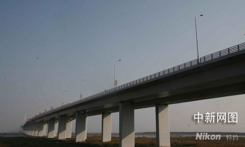杭州灣跨海大橋是目前世界上在建和已建的最長跨海大橋,于二〇〇三年底全面開工建設,三年零七個月實現(xiàn)全橋貫通,比原定計劃提早八個月全線通車,于二〇〇八年五月一日試運營通車。