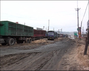 在離這家企業(yè)不遠的一處私營煤礦門口,記者見到頗為壯觀的場面,一些重型貨車全是來拉電煤的,由于礦上庫存不夠,這些車輛只能在這等待現(xiàn)生產(chǎn)出來的電煤。