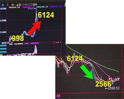 2年時間里,中國股市成了人民幣的“復(fù)印機(jī)”,無論買什么股票,投入一萬元,很快就會變成2萬元、3萬元,甚至更高,為了得到“復(fù)印”人民幣的資格,證券交易所里,急著開戶的人擠成一堆。