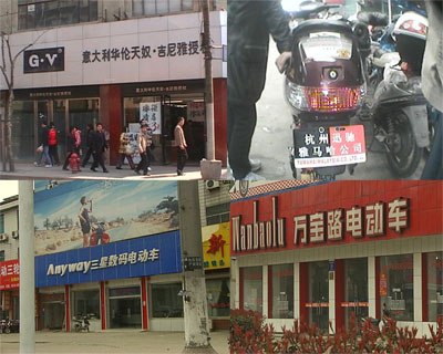 在中國電動(dòng)車生產(chǎn)最集中的江蘇無錫安鎮(zhèn),很多品牌都掛上了雅馬哈、鈴木等監(jiān)制的字樣,更有甚者,直接叫“三星數(shù)碼電動(dòng)車”,“萬寶路電動(dòng)車”。