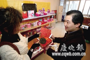 “原來(lái)喜糖盒子還可以這么做。 睅е环形,兩人回到重慶開(kāi)始籌劃自己的生意——開(kāi)一家夫妻店,老婆負(fù)責(zé)設(shè)計(jì),老公負(fù)責(zé)銷(xiāo)售。于是,2008年2月,他們的個(gè)性喜糖店在南坪中心地帶一家住宅小區(qū)附近正式開(kāi)張了。
