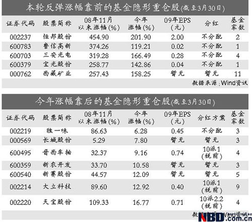 昨日,基金2008年年報(bào)的披露正式落幕,基金去年年底時(shí)的持股明細(xì)悉數(shù)浮出水面,被基金排除在十大重倉(cāng)股之外的 “非主流”品種一一曝光,這些基金隱形重倉(cāng)股中不乏本輪行情中的大牛股,比如恒邦股份、魯信高新等。