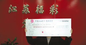 4月2日上午,中獎者劉京(化名)來到江蘇福彩中心領(lǐng)走巨獎。