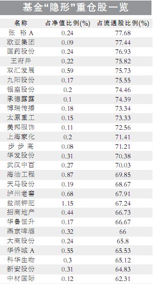 每年4月,伴隨著基金年度報(bào)告的披露,基金隱形重倉(cāng)股會(huì)成為市場(chǎng)最關(guān)注的焦點(diǎn)。這不僅僅是因?yàn),基金隱形重倉(cāng)股代表著基金在市場(chǎng)內(nèi)最看好、持有份額最重、價(jià)格影響力最大的一群股票。而且,更因?yàn)槠湎鄬?duì)的“隱形”,讓有關(guān)的股票在大家的視野中不是那么明顯。因而,也就更具備了市場(chǎng)的關(guān)注意義。本期《基金周刊》關(guān)注的就是基金最新隱形重倉(cāng)股。