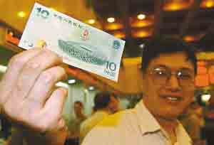 奧運(yùn)紀(jì)念鈔上的編號(hào)引起了黃盛偉和幾位老板的注意。他們發(fā)現(xiàn),近日媒體刊登的面額10元奧運(yùn)紀(jì)念鈔的編號(hào)是“J10000009”。專家說:“編號(hào)為8位數(shù),這是否意味著奧運(yùn)會(huì)紀(jì)念鈔發(fā)行量可能會(huì)增加到一千萬張?”(孔華、崔群)