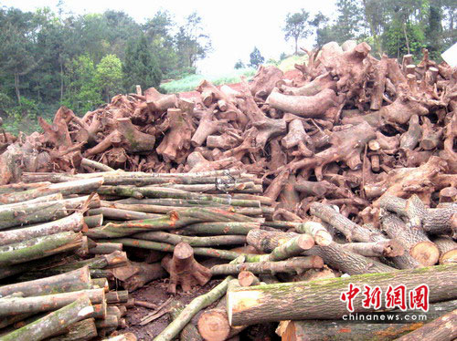 宜賓油樟的根、枝、葉、木材均可提取樟油,經(jīng)深度加工提煉為“中國(guó)桉葉油”,暢銷(xiāo)日本、新加坡、法國(guó)、美國(guó)等50多個(gè)國(guó)家和地區(qū),占國(guó)際貿(mào)易量的三分之一。去冬今春,價(jià)格逐步回升,每噸已漲至5.5萬(wàn)元,被當(dāng)?shù)剞r(nóng)民譽(yù)為“搖錢(qián)樹(shù)”。 3月31日,宜賓縣森林公安局觀音派出所先后接到電話舉報(bào)稱:隆興鄉(xiāng)隆興村小魚(yú)組有人正在蒸煮黃樟油,現(xiàn)場(chǎng)還堆放近5萬(wàn)斤油樟樹(shù)蔸;白花鎮(zhèn)里宗村里建組都場(chǎng)凹(小地名)正在蒸煮黃樟油,現(xiàn)場(chǎng)還有4萬(wàn)多斤油樟樹(shù)蔸。派出所隨即派人前往兩處非法提煉窩點(diǎn)查處,當(dāng)場(chǎng)將違法人員顏某、趙某等擋獲。