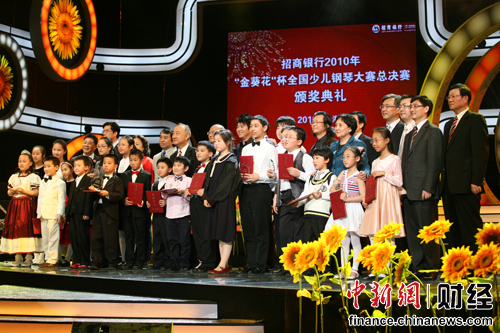 活動現(xiàn)場,招商銀行和中國兒童少年基金會合作成立了金葵花兒童成長基金鋼琴藝術(shù)計(jì)劃,招商銀行丁行長和兒童基金會領(lǐng)導(dǎo)共同舉行了揭牌儀式。此計(jì)劃將資助有鋼琴天賦卻家庭困難的兒童,以實(shí)現(xiàn)他們的鋼琴夢想;饡诂F(xiàn)場將第一筆基金頒發(fā)給2008年參賽的盲人琴童來佳俊,和本屆參賽的琴童盧星宇,以鼓勵(lì)他們在鋼琴道路上越走越遠(yuǎn)。 (中新網(wǎng)財(cái)經(jīng)頻道)