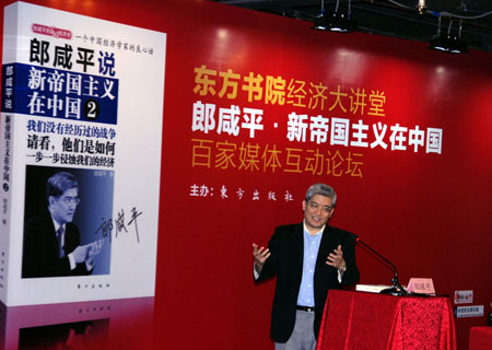 郎咸平警示,華爾街貪婪給中國及歐洲造成危機(jī),他們?yōu)樽分鹄媸遣粫?huì)顧及道德責(zé)任的,中國不應(yīng)該忽略或是低估“新帝國主義”操縱經(jīng)濟(jì)所帶來的負(fù)面影響。“危機(jī)本身不可怕,只要把危機(jī)說透了,就不會(huì)再有危機(jī)!崩上唐秸f。