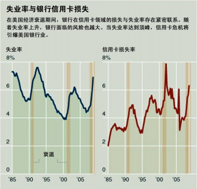 隨著美國(guó)失業(yè)率飆升至8.9%達(dá)53.9萬(wàn)人時(shí),許多信用卡持卡人陷入財(cái)政困境,無(wú)力償還欠款。更多的失業(yè)意味著更多的銀行損失。專家預(yù)測(cè),很快會(huì)有上百萬(wàn)美國(guó)人無(wú)力償還信用卡債務(wù),對(duì)發(fā)卡銀行來說,這是持卡人給他們挖的一個(gè)“新坑”,信用卡損失正成為美國(guó)銀行業(yè)面臨的新挑戰(zhàn)。