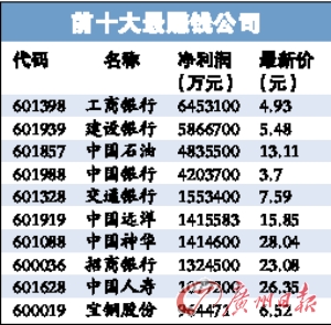 前十大公司半年賺2911億。 圖片來源:廣州日報