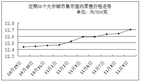 中新網(wǎng)11月12日電 國家發(fā)改委網(wǎng)站發(fā)布消息稱,據(jù)國家發(fā)展改革委價(jià)格監(jiān)測中心監(jiān)測,上周(11.5-11.9,下同)全國36個大中城市豬肉(精瘦肉)集市平均零售價(jià)格每500克為12.63元,比上期(10.29-11.2,下同)上漲1.28%。