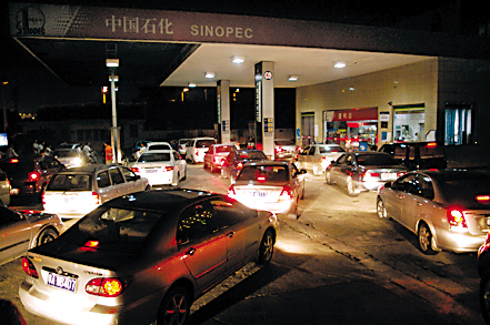 圖:漲價(jià)謠言瘋傳 油站夜排長(zhǎng)龍 圖片來(lái)源:羊城晚報(bào)