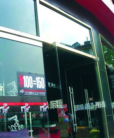 該生活館收銀臺(tái)一名工作人員告訴記者,這是他們?yōu)橛印拔逡弧备愕幕顒?dòng),符合條件的人民幣在消費(fèi)時(shí)不限量,不管多少都能當(dāng)150元使用。當(dāng)記者問(wèn)這種促銷(xiāo)方式是否合適時(shí),該店負(fù)責(zé)人表示,他們這樣做就是想讓利給顧客,從來(lái)沒(méi)有考慮過(guò)有什么不合適,而且,他們已經(jīng)到處做廣告,發(fā)宣傳單頁(yè),即使改也來(lái)不及了。