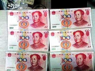 晚上姚先生夫婦回到家收賬,“我用驗鈔機查收,發(fā)現(xiàn)6張百元鈔票都是假的。老人家對錢接觸得不是很多,根本沒意識到那是假鈔!碑敿匆ο壬团袛嗍窍挛缒腔锶私o的假錢,因為整整一天,只有那幾筆生意,“他們肯定是一伙的,看老人一個人看店,便想得便宜。”姚先生稱,這些假鈔一般人根本看不出來,外表和真鈔一模一樣,他用驗鈔機才驗出是假鈔。姚先生向記者展示收到的6張假鈔,其中竟然有兩張編號是一模一樣的,均為CE86269827,其它四張編號分別為CE86269828、CE86269821、TJ88285895、TJ88285897。