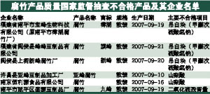 國家質(zhì)檢總局日前對50家企業(yè)生產(chǎn)的50種腐竹產(chǎn)品進(jìn)行監(jiān)督抽查,產(chǎn)品實物質(zhì)量抽樣合格率為96.1%,發(fā)現(xiàn)有3款腐竹違規(guī)添加禁用的“吊白塊”,另外還有兩款腐竹使用禁用的防腐劑山梨酸。食用含吊白塊的食品會引起過敏、腸道刺激等不良反應(yīng),嚴(yán)重者可產(chǎn)生中毒,令腎臟、肝臟受損。