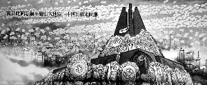 繪制長(zhǎng)卷前后歷時(shí)四年,中間數(shù)易其稿,嘔心瀝血,終于在今年完成了這幅高18.5米、長(zhǎng)80多米的《唐山大地震祭》巨幅長(zhǎng)卷。長(zhǎng)卷分為地震將臨、神兵天降、自救互救、八方支援、傷員外運(yùn)、清尸防疫、恢復(fù)生產(chǎn)、重建家園、再組家庭、歡送親人十部分。為表現(xiàn)唐山地震中的磨難,我們以“祭”字為切入點(diǎn),展示唐山人在大悲大痛面前的壯烈激昂,以黑白為基調(diào),全景式地展現(xiàn)凝重悲壯的場(chǎng)景,勾勒出母親的哀慟、孩童的驚恐、人們絕望而又渴生的奮爭(zhēng),以及在那死亡彌漫的廢墟間閃動(dòng)著無(wú)數(shù)紅領(lǐng)章和五角星,讓觀者如身臨其境。當(dāng)年唐山抗震救災(zāi)指揮部副總指揮遲浩田將軍特為畫卷題詞:“那萬(wàn)眾一心,共赴危難的感人情景,令我終生難忘!