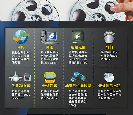 除網(wǎng)吧、長途車外,影著協(xié)還將逐步推進(jìn)網(wǎng)絡(luò)、視頻點(diǎn)播、飛機(jī)、火車、非營利性局域網(wǎng)、音像制品出租等領(lǐng)域電影使用費(fèi)的收取。