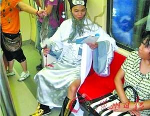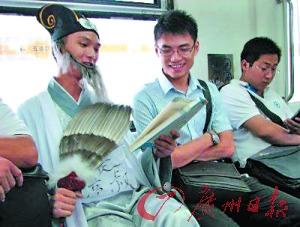 近日,一名青年男子穿白色古裝,臉上黏著灰白胡子,手持鵝毛扇,扮作諸葛亮出沒于北京地鐵,繁華鬧市中,異!袄L(fēng)”并迅速在網(wǎng)上躥紅。