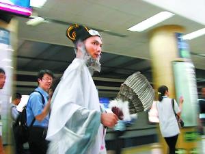 一位還算眉清目秀的年輕男子打扮成諸葛亮的樣子,在地鐵里忽而吟誦,忽而大笑,做出種種引人側(cè)目的動作。這是最近風(fēng)靡網(wǎng)絡(luò)的又一個“神秘人物”。如此裝扮卻為何?是崇拜古人?是有病?或者干脆就是網(wǎng)絡(luò)推手在炒作?由于這位“亮叔”手中拿著一本剛上市的新書,網(wǎng)友們懷疑最后一種的可能性最大。
