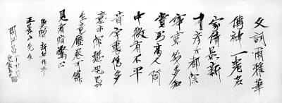 自謙不是書(shū)法家的周汝昌,幼少時(shí)即醉心歐楷筆法,20歲后又致力于唐人寫(xiě)經(jīng),深研《蘭亭》后,得右軍真脈,遂平生作書(shū)多行草,其“橫逸飛動(dòng)、筆筆不茍、使轉(zhuǎn)敷暢、作草如真”的周體法書(shū),在眾多書(shū)家中以勢(shì)明法合意美之筆、英風(fēng)俊骨之墨神采煥然,只是受目力所限,70歲后便極少動(dòng)墨了。這也是周汝昌書(shū)法作品存世稀少的原因。