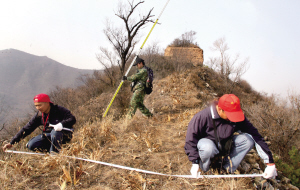 昨天,市文物局在對(duì)延慶縣永寧羅家臺(tái)村長(zhǎng)城進(jìn)行實(shí)地測(cè)繪時(shí)宣布,長(zhǎng)城北京段測(cè)繪第四階段調(diào)查全面展開(kāi),預(yù)計(jì)全部測(cè)繪工作將于明年結(jié)束。此前的測(cè)繪中,在延慶縣新發(fā)現(xiàn)5公里長(zhǎng)的石砌長(zhǎng)城。