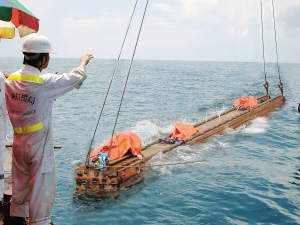 據(jù)介紹,在能見(jiàn)度幾乎為零的31米水深處進(jìn)行“海底穿梁”,史無(wú)前例,難度相當(dāng)大。交通部廣州打撈局克服海底含沙泥層阻力大和作業(yè)現(xiàn)場(chǎng)浪涌大等種種困難,不斷創(chuàng)新工藝,優(yōu)化工序,用了2016班次水,順利、安全地穿過(guò)36根底托梁。