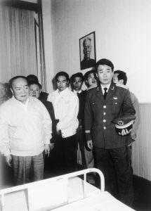 1998年夏秋,發(fā)大水抗大洪,我忙得夠嗆。9月12日上午,張鼎承叔叔的女兒張九九突然來(lái)電話:“你快來(lái)301醫(yī)院,楊主席快不行了,來(lái)看最后一眼!”我飛車趕往,一路上心煩意亂:一直以為楊爸爸的身體好得出奇,怎么說(shuō)不行就不行了呢?到了醫(yī)院,我才得知他已住院多日了。小二哥哥(楊紹明)先帶我到病榻旁,老人家已沒(méi)有知覺(jué),周圍全是醫(yī)生、護(hù)士和機(jī)器設(shè)備,正在搶救。妞妞趴在床邊,捧握著楊爸爸的一只手……我?guī)缀跏谴粼谀抢铮刈⒁曋鴱浟糁H的他。小二哥哥說(shuō):“爸爸在病中幾次念叨你,每從電視上看到發(fā)大水,就說(shuō)你一定正在抗洪,忙得顧不上來(lái)看他。他不要我們告訴你,怕你分心。”我抽泣著退出房間……