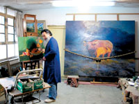 楊大味告訴記者,今年海淀區(qū)要成立一個(gè)藝術(shù)園區(qū),要他們搬過去。已經(jīng)同他說了好幾次!八囆g(shù)家們不是沒有選擇。之所以至今還沒人離開宋莊,是因?yàn)樗吻f凝聚了我們太多的堅(jiān)持,每個(gè)人都會對這種堅(jiān)持抱有依戀!背繄(bào)記者 鄒樂文并攝