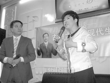 昨日上午,中華書局在圖書訂貨會上邀請著名學(xué)者于丹前來捧場,于丹又拉上自己的校友、同為著名學(xué)者的康震,兩人一起進(jìn)行了一場名為“古典之美與現(xiàn)代生活”的學(xué)術(shù)對話。話題所限,他們的對話內(nèi)容比較專業(yè)和枯燥,現(xiàn)場反應(yīng)比較極端,有些聽眾昏昏欲睡,另一些卻拿起筆記本記下“名人語錄”。還有不少聽眾開始在臺下議論起這個“學(xué)術(shù)超女”的衣著打扮,“她穿的衣服好像餐館的制服哦”,“于丹皮膚不怎么好,她應(yīng)該買好點兒的化妝品!