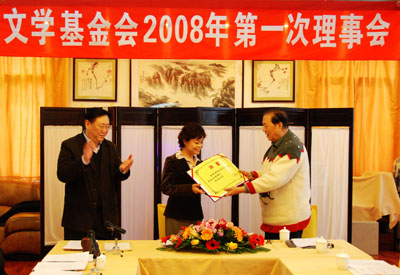 1月22日,在中華文學(xué)基金會2008年度第一次理事會上,中國作家協(xié)會主席鐵凝經(jīng)全體理事推舉,受聘擔(dān)任中華文學(xué)基金會會長。中華文學(xué)基金會的老領(lǐng)導(dǎo)、中國作家協(xié)會名譽(yù)副主席張鍥向鐵凝頒發(fā)了會長聘書。鐵凝表示,感謝基金會理事們的信任,作為一名作家,不僅在1993年榮獲莊重文文學(xué)獎,更親眼目睹了中華文學(xué)基金會二十多年來服務(wù)作家、為繁榮我國文學(xué)事業(yè)所做出的貢獻(xiàn)。今后,愿與基金會全體同志一起努力,盡自己所能,為實(shí)現(xiàn)繁榮文學(xué)創(chuàng)作,培養(yǎng)文學(xué)人才,增進(jìn)國內(nèi)外學(xué)術(shù)交流,促進(jìn)祖國文學(xué)事業(yè)的發(fā)展奉獻(xiàn)力量。理事會由中國作家協(xié)會黨組成員、副主席、書記處書記,中華文學(xué)基金會理事長高洪波主持,會上,理事們審議通過了基金會2007年工作總結(jié)和2008年工作計(jì)劃等九項(xiàng)議程。根據(jù)《基金會管理?xiàng)l例》和《中華文學(xué)基金會章程》,李小慧被推舉為中華文學(xué)基金會秘書長(專職)。中國作家協(xié)會名譽(yù)副主席鄧友梅等理事出席了理事會。