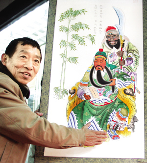 材料的造假大大坑害了這些年畫家,讓他們更傷腦筋的還有仿冒的假畫。年畫屬于民間藝術(shù),民間藝術(shù)沒(méi)有“專利”概念,所以市面上假畫橫行。霍慶有說(shuō):“我在外面開(kāi)店沒(méi)生意,客人生怕上當(dāng),所以我才開(kāi)了家庭作坊,人家看著我畫出來(lái),才敢買!