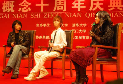 發(fā)掘出韓寒、郭敬明、張悅?cè)坏热说摹靶赂拍钭魑拇筚悺弊哌^了10個年頭,昨天在上海舉辦的“新概念作文大賽”十年慶典上,歷屆獲獎作者和評委濟濟一堂,在上海作協(xié)的安排下,韓寒、郭敬明、張悅?cè)蝗艘彩状渭w亮相。