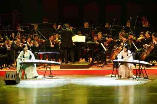 近日來,這些活躍于國(guó)際樂壇、享有極高聲望的華人音樂家在國(guó)家大劇院內(nèi)進(jìn)行了緊張的彩排。黃英的《春江花月夜》、殷承宗的鋼琴協(xié)奏曲《黃河》,齊•寶力高的《心靈之歌》,袁莉袁莎姐妹的古箏曲目《漁舟唱晚》響徹國(guó)家大劇院的歌劇廳,激蕩人心。本次音樂盛典的一大特色是“中國(guó)旋律,西式演繹;傳統(tǒng)藝術(shù),現(xiàn)代表現(xiàn)”,這在連續(xù)兩日袁莉袁莎姐妹古箏演奏中得到了極好的體現(xiàn)。她們表示,古箏是中國(guó)的傳統(tǒng)樂器,但這一次就與交響樂合奏,擴(kuò)大了傳統(tǒng)的舞臺(tái),可以使更多的觀眾了解接受欣賞這一藝術(shù)。是一項(xiàng)很好的嘗試。在排練的同時(shí),這些藝術(shù)家們,時(shí)刻不忘災(zāi)區(qū)。他們多次詢問災(zāi)區(qū)的情況,關(guān)注還在返鄉(xiāng)途中的同胞。不管他們能否有機(jī)會(huì)聽到這些音樂,都希望音符的傳揚(yáng)可以給他們帶去力量和希望。