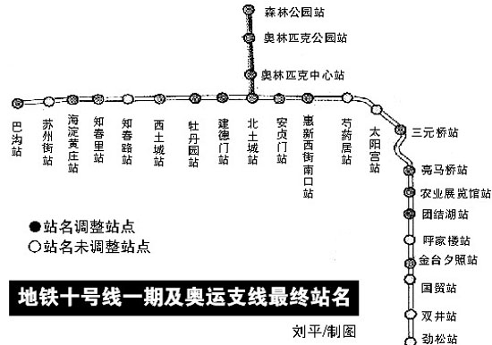 十號(hào)線與奧運(yùn)支線的換乘站熊貓環(huán)島站更名為北土城站。而奧運(yùn)支線沿線的三座車站名稱更是全體更名,奧體中心站更名為奧林匹克中心站;大屯路站更名為奧林匹克公園站;科薈路站更名為森林公園站。(記者 王娟)