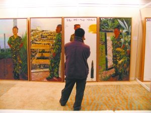 昨天在北京開始的為期兩天的預(yù)展是香港蘇富比春季拍賣巡展的第一站,展出上百件藝術(shù)品和瓷器工藝品,而會場正中的就是由18張海峽兩岸軍人肖像組成的《戰(zhàn)地寫生:新十八羅漢像》。這是“新寫實(shí)主義”代表藝術(shù)家劉小東2004年參加“金門碉堡藝術(shù)館──十八個個展”時創(chuàng)作的作品,他花了三個星期在中國大陸和臺灣的軍營內(nèi),找來九位軍人作為肖像的主角,并在畫中記下他們的名字和籍貫,象征性地彰顯畫家對兩岸和諧合作的期盼。次年,這組作品在北京舉行的國際畫廊博覽會上以50萬美元被來自西安的商人淡勃買下,轟動一時。今年北京嘉德的春拍也將出現(xiàn)劉小東的油畫《溫床》,根據(jù)之前媒體的報道,這件作品的創(chuàng)作計劃也和淡勃的投資有關(guān)。除了劉小東,岳敏君、劉野等藝術(shù)家的作品也將出現(xiàn)在這次拍賣中。