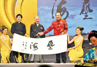 出席晚會并為獲獎演員頒獎的還有知名藝術(shù)家秦怡、嚴(yán)順開、李炳淑、王夢云、張先衡等。晚會最大看點是三度白玉蘭獎榜首計鎮(zhèn)華與坂田藤十郎的現(xiàn)場書法表演。深受觀眾喜愛、連獲兩屆“白玉蘭”的青年舞蹈家黃豆豆,則同時以舞蹈來演繹書法的風(fēng)骨神韻。這一結(jié)合了書法、舞蹈、古箏、動漫等多種元素并浸潤著中日兩國藝術(shù)家友誼的現(xiàn)場藝術(shù)交流,再一次印證了本屆頒獎晚會“香飄四!钡闹黝}和“海納百川”的精神。(記者端木復(fù))